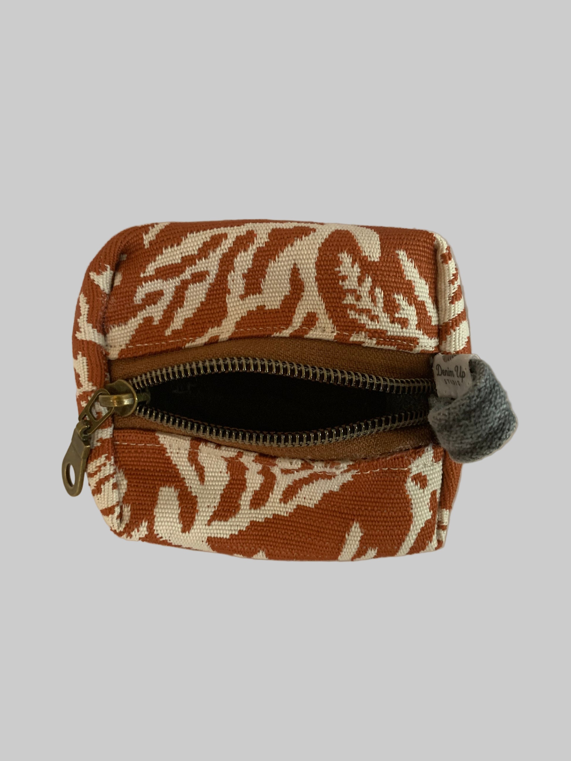 Compact and charming, this coral & denim mini boxy zipper pouch is your new go-to for keeping the small things organized. Handcrafted with care, it's perfect for stashing essentials—lip balm, earbuds, or those little treasures that always seem to disappear.