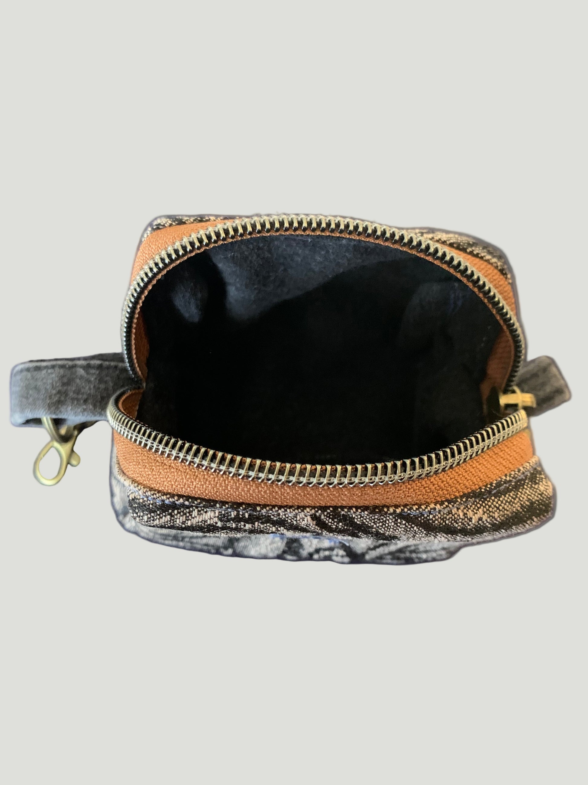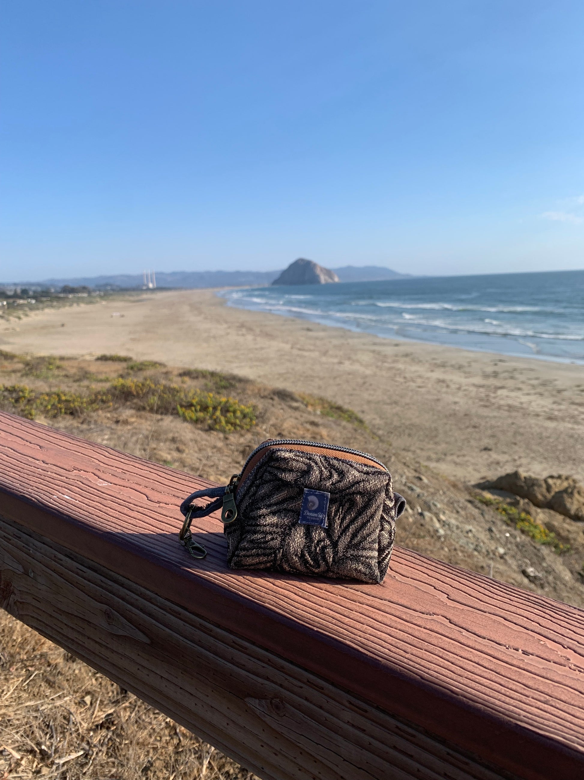 This one carries stripes like the sea and texture like driftwood. It's made from reclaimed fabric, stitched with care, and named after the studio cat who never lets a project go unnoticed.