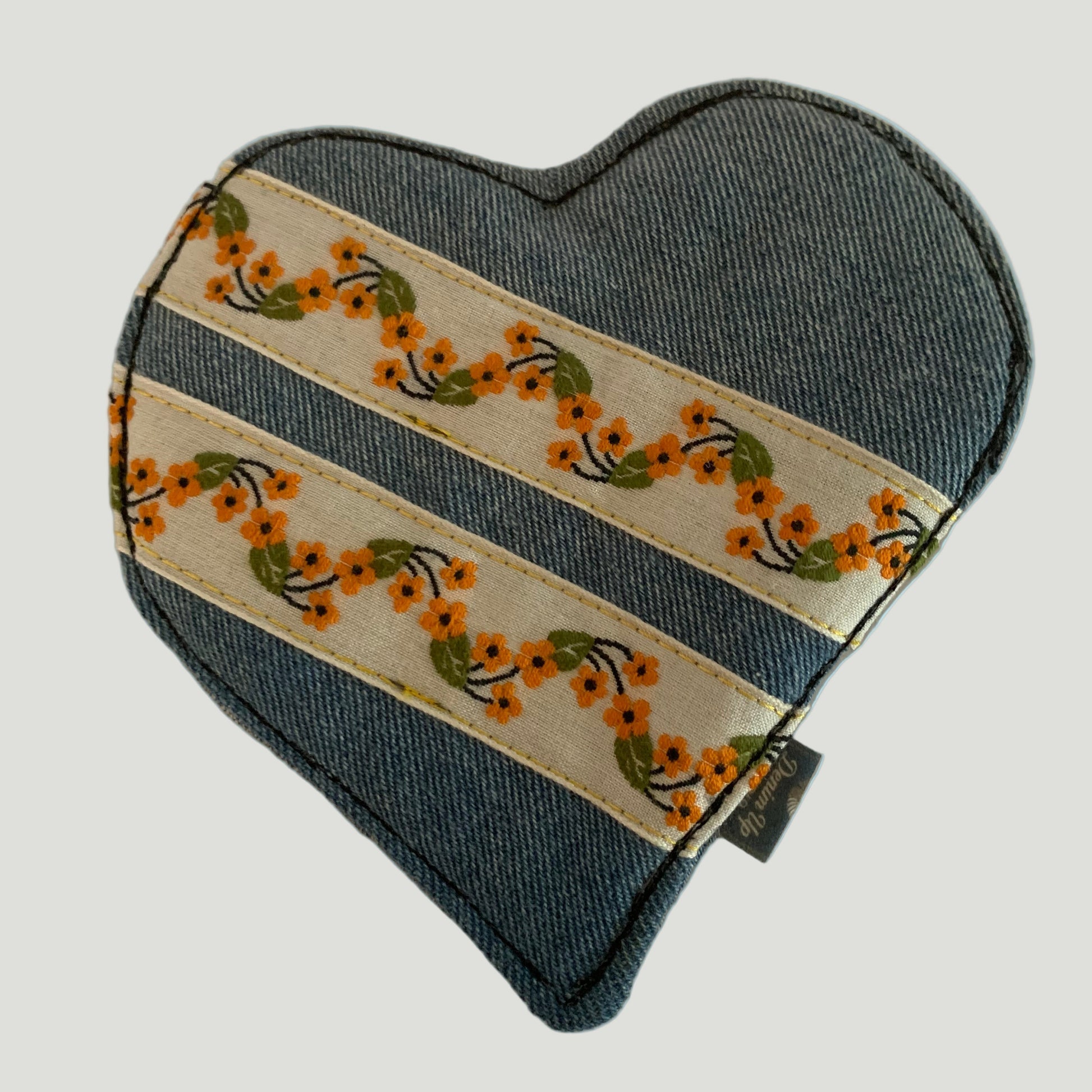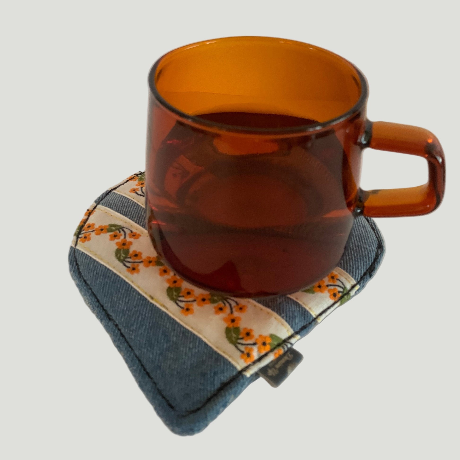 Transform your table setting with this set of two charming handcrafted denim coasters featuring delicate vintage embroidered floral ribbon. Each coaster combines the rustic appeal of quality denim with the elegant touch of vintage-inspired floral embroidery, creating the perfect blend of casual sophistication. *Please note: glass mug is not included.